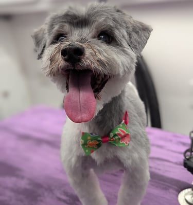 Delivering a clean and stress free salon to your driveway. Always cage free and one on one, book now to join the Fetch Trims family.